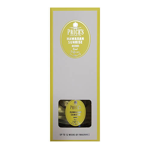 The diffuser reeds stand in the fragrance and give up to 12 weeks of Hawaiian Sunrise aroma.