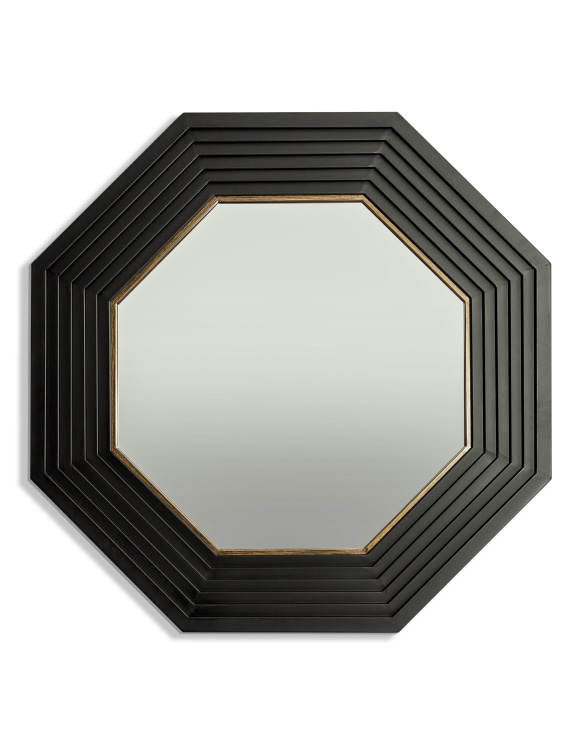 Large Savoy Black & Gold Metal Step-Framed Octagonal Wall Mirror