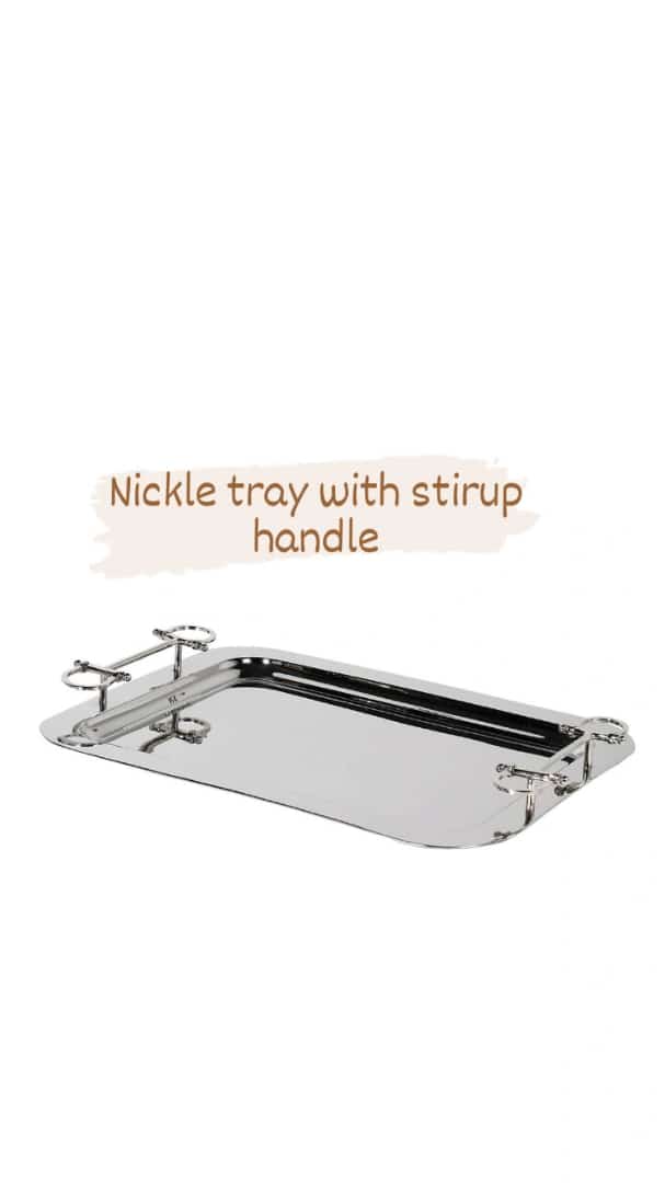 Nickle Tray With Stirrup Handles (H:5 x W: 47 D: 34cm)