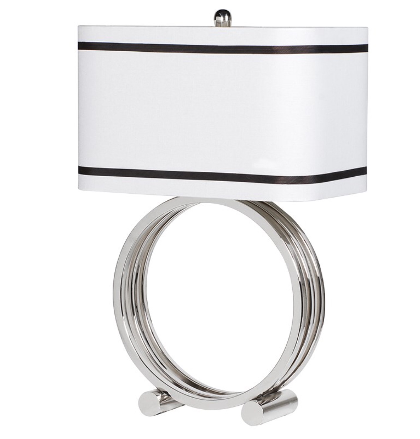 Ring Base Lamp with White Lined Shade (H:590mm x W:400 x D:260mm)