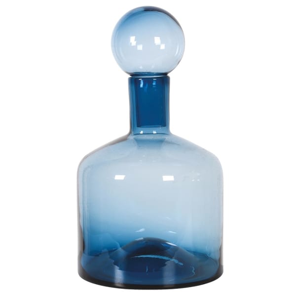 Small Blue Glass Bottle with Ball Topper